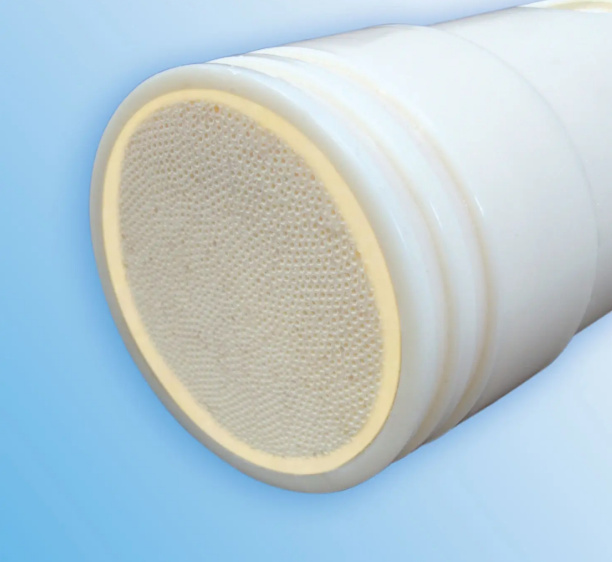 陶瓷過濾器(膜)過濾、分離和凈化廢水,以便在工藝中重復(fù)使用或安全排放到下水道。它是一種由無機(jī)材料制成的人工膜,如氧化鋁、二氧化鈦、氧化鋯或碳化硅。施加多層陶瓷膜材料以產(chǎn)生管狀膜元件,也稱為陶瓷元件。陶瓷微濾使用橫流設(shè)計,其中大部分進(jìn)料流沿切線方向穿過過濾器表面,而不是進(jìn)入過濾器。并且具有優(yōu)異的熱穩(wěn)定性,這使其可用于高溫操作,并可用于存在腐蝕性介質(zhì)(如酸和強溶劑)的分離。元件具有多條不同直徑(孔隙率)的通道,以供給水通過,孔隙率范圍為0.05至0.2微米。